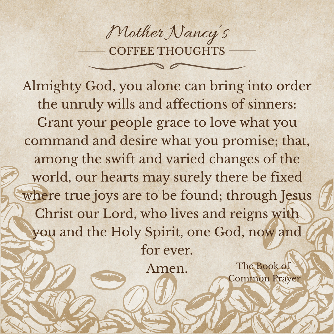 The prayer for today always makes me chuckle a little, not in a disrespectful way but in a ‘what a clever way to describe our humanness’ way. Unruly wills and affections. Yep, most days I can say I have moments where my will and affections can be described as unruly. This is one of my favorite prayers of the church year. Today, however, this prayer stuck me even deeper. When I got to the part ‘among the swift and varied changes of the world’ I felt in the depths of my soul.
